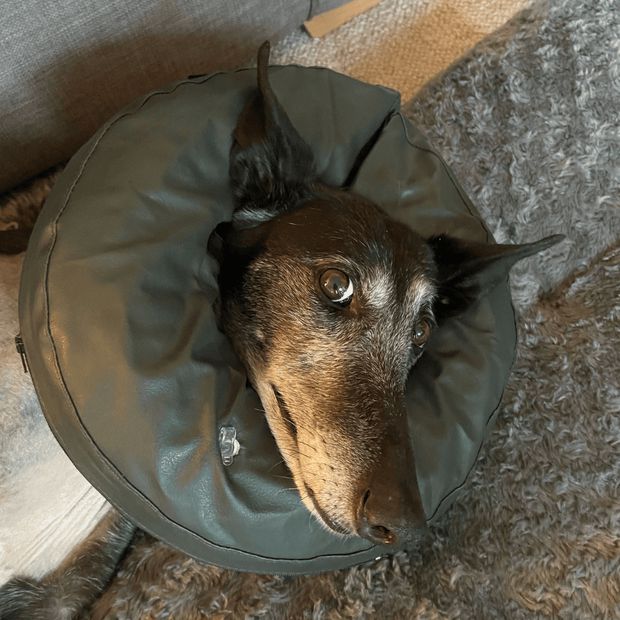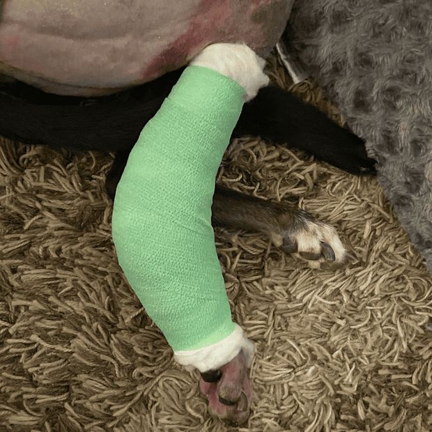 We booked Alma in with our vet straight away, and it was discovered that she had a ruptured Achilles tendon. She was given pain relief, and a medical boot was fitted to try and make her as comfortable as possible. One of our foster carers took Alma home so that she could rest in a nice warm house and have the love and care she so desperately deserves whilst we figured out what steps to take next.