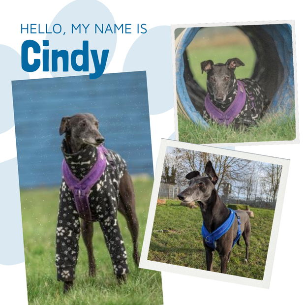 Despite all of the above, Cindy loves other dogs and has gained so much confidence from time spent with two greyhound buddies in her foster home. She has gradually learnt how to play and realised that she actually quite enjoys it – almost as much as a good snooze!