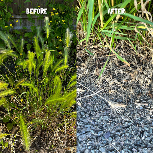 The image on the left is a young foxtail, as a warning for what is to come. Once it matures it disperses its seeds, ready to colonise, and ends up looking like the photo on the right. This is when they become dangerous, as they spread very quickly.