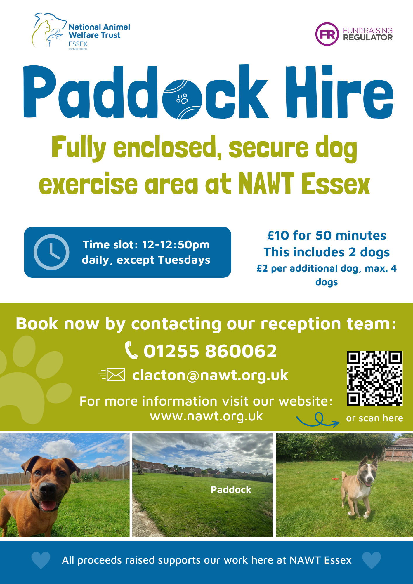 As part of our commitment to helping pets and their owners in our local communities, and to raise vital funds for the homeless animals in our care, we have introduced paddock hire services at some of our centres.